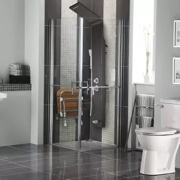 Wall-Mounted Luxury Thermostatic Shower System with Storage Rack & Towel Bar