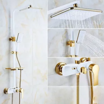 Bathroom Shower Faucet Set Gold Swan Rainfall Shower Mixer