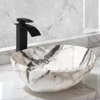 Elegant White Marble Oval Vessel Sink Set with Matte Black Faucet