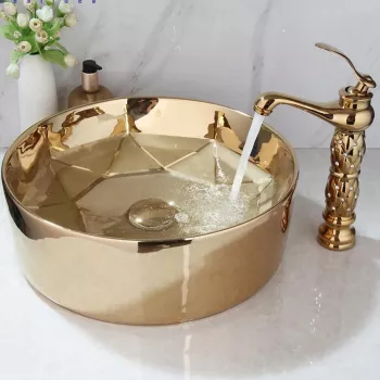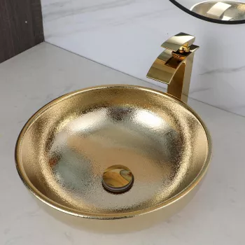 Luxury Gold Ceramic Vessel Sink Set with Golden Faucet & Pop-Up Drain