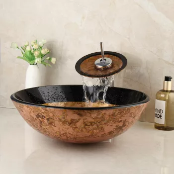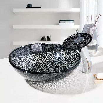Handmade Mosaic Pattern Tempered Glass Basin with Waterfall Faucet Set