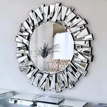 Large 32” Round Wall Mirror with Beveled Frame – Modern Silver Accent Décor