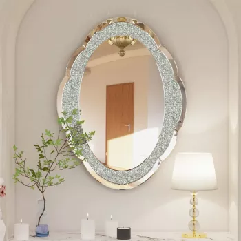 Elegant Arch Wall Mirror with Crushed Diamonds – 23.6x31.5” Sparkle Accent Mirror