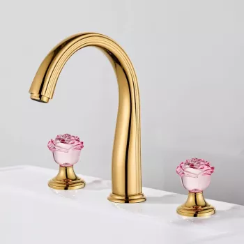 Gold Flower Crystal Handle Bathroom Faucet - 8" Widespread