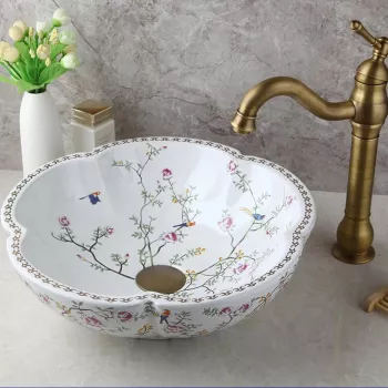 Hand Painted Floral Ceramic Bathroom Sink Set with Stream Faucet