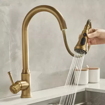 Antique Brass Kitchen Faucet with Pull Out Sprayer - 360° Rotation