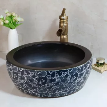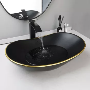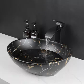 European Style Ceramic Bathroom Sink with Black Waterfall Faucet & Pop-Up Drain