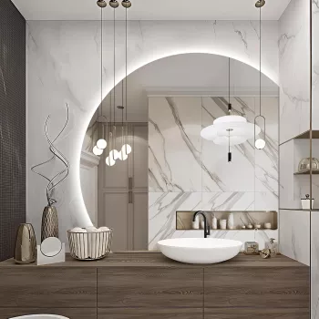 35 Inch Half Moon LED Vanity Mirror with Backlit Anti-Fog Touch Control