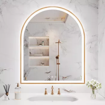 Arched 36''x30'' LED Bathroom Mirror with Dimmable Backlight & Anti-Fog Gold Frame