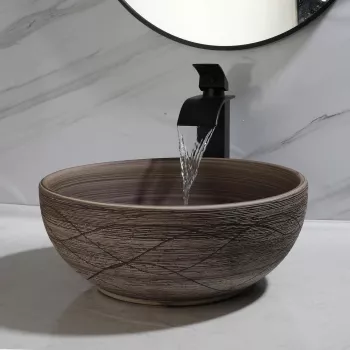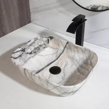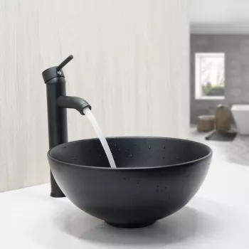 Modern Marble Style Ceramic Vessel Sink Set with Matte Black Faucet