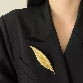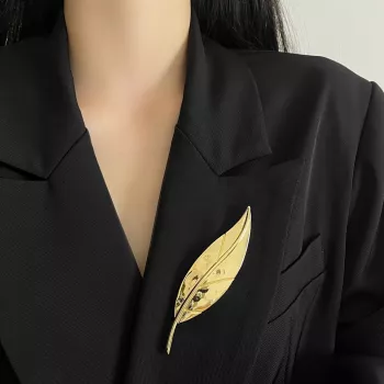 Vintage Glossy Leaf Feather Brooch Pin for Women