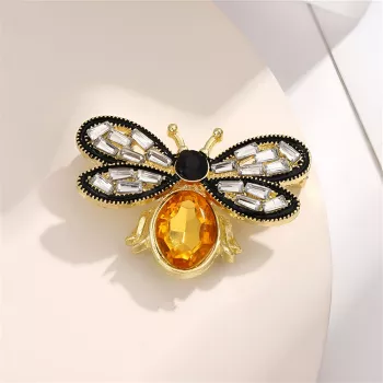 Vintage Colorful Rhinestone Bee Brooch Pin with Faux Pearl Accent