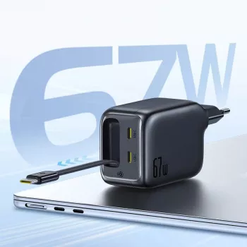 67W Retractable Fast Charger USB-C Quick Charge Adapter for Travel