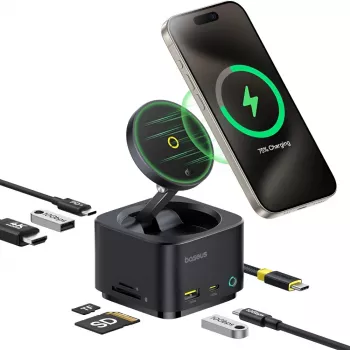 65W GaN Desktop Fast Charger with 15W Magnetic Wireless Stand