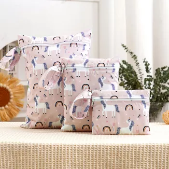 3Pcs Waterproof Reusable Diaper Cover Set with Zipper Wet Bags for Travel
