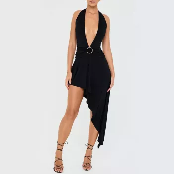 Elegant Spaghetti Strap Backless Ruffle Mini Dress for Women