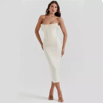 Off-Shoulder Pearl Tassel Bodycon Midi Dress