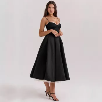 Elegant Contrast Patchwork Mesh Women's A-line Maxi Dress