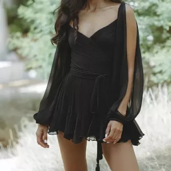 Elegant Strapless Backless Mini Dress with Flare Sleeves