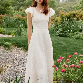 Elegant Spring Summer V-neck Chiffon A-line Dress with Flying Sleeves