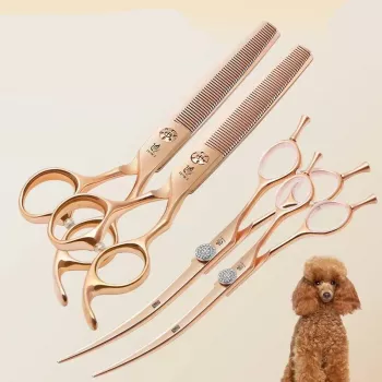 6.5/7.0 Inch Rose Gold Curved Dog Grooming Thinning Scissors – Serrated V-Teeth