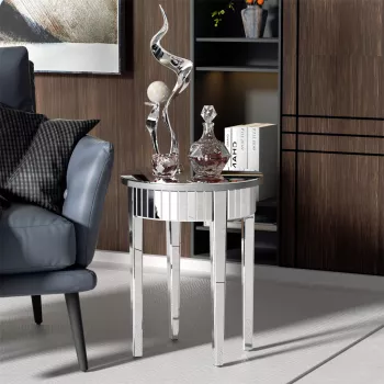 Mirrored Round Side Table - Stylish 2-Tier Accent Table for Living Room
