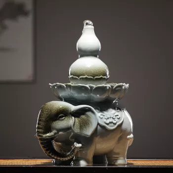 Blue Ceramic Elephant Water Fountain with Flowing Gourd