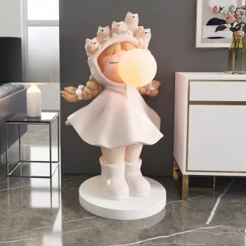 Large Cream Resin Wind Girl Sculpture Floor to Ceiling Decor