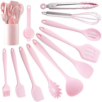12-Piece Pink Silicone Cooking Utensil Set – Non-Stick Kitchen Tools with Storage Box