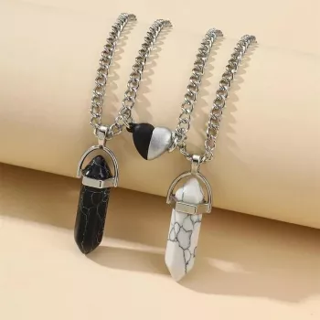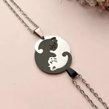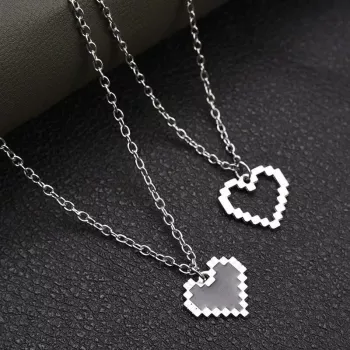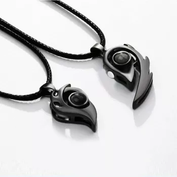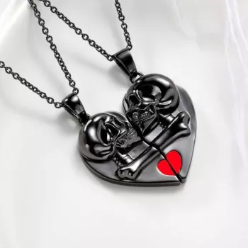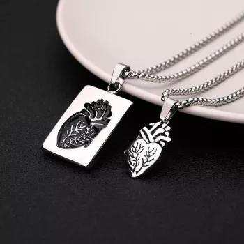 Black & Silver Hollow Heart Pendant Necklace for Couples