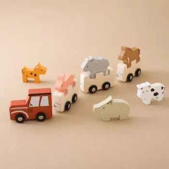 Wooden Train Stacking Blocks – Montessori Farm Animal Educational Toy