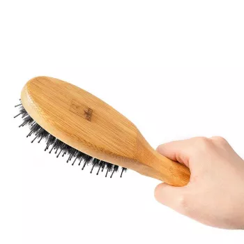 Portable Pet Grooming Brush with Eco-Friendly Bamboo Handle