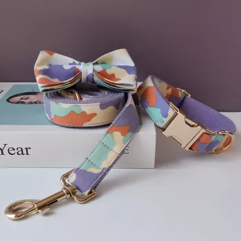 Camouflage Dog Collar with Bow Tie and Matching Leash Set