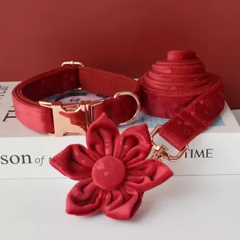Floral Pattern Dog Collar with Heart Accent Name Plate