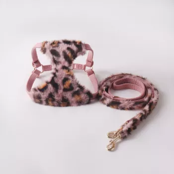 Leopard Print Faux Fur Dog Harness & Leash Set – Soft & Secure