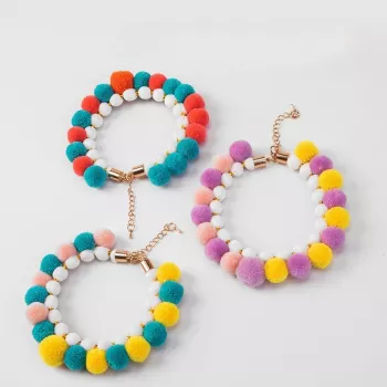 Rainbow Flower Dog Bow Tie Collar with Hair Ball Necklace for Pets
