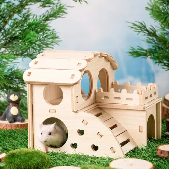 Wooden Hamster House Swing Nest with Multi-Holes & Natural Breathable Design