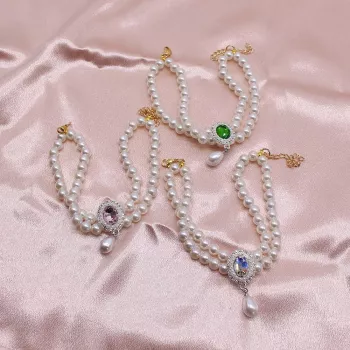 Luxury Adjustable Pearl Pet Necklace with Diamond Pendant