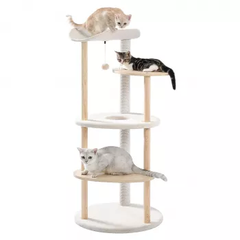 Modern Cat Tree Tower with Scratching Post, Condo, and Perch – Beige Wooden Furniture