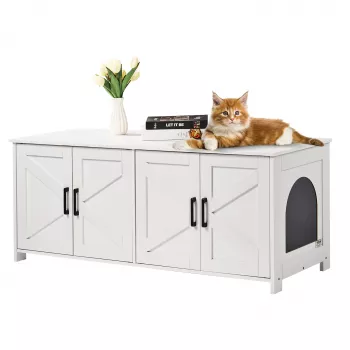 Large Cat Litter Box Enclosure with Cushion Bed, Scoop & Hidden Cabinet Design