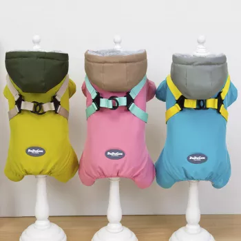 Dog Hooded Vest Jacket with Harness – Warm Coat for Small Breeds