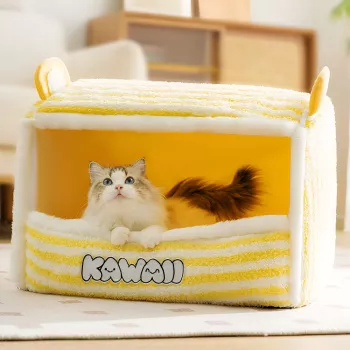 Fluffy Foldable Puppy Bed – Cozy Half-Closed Kennel Nest