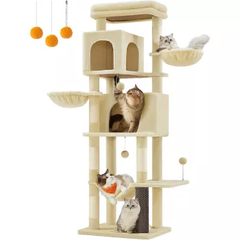 69-Inch Tall Multi-Level Cat Tree Tower with Caves, Baskets & Scratching Posts