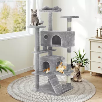 54-Inch Indoor Cat Tree Tower with Condos, Scratching Posts, and Platforms