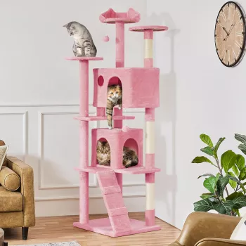 70 Inch Multi-Level Cat Tree Tower with 2 Spacious Condos & Hanging Toys