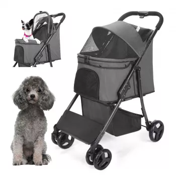 Foldable Pet Stroller with 3 Wheels for Dogs and Cats, Travel Trolley 300 lbs