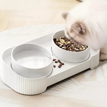 Elevated Ceramic Cat Bowl with Tilted Double Feeder & Anti-Slip Base