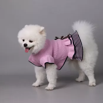 Warm Knitted Dog Sweater Dress with Bowtie & Ruffles for Small Dogs
