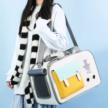 Color Blocked Shoulder Pet Carrier Bag - Breathable Travel Backpack