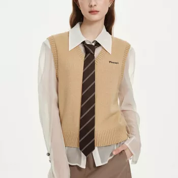 Women's Autumn Beige Wool Blend V-Neck Sweater Vest